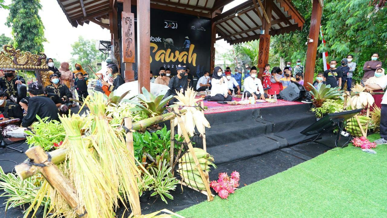 Banyuwangi - Memasuki masa tanam untuk 2022, para petani di Banyuwangi menggelar tasyakuran 'Bubak Sawah'. Mereka menggelar tasyakuran bersama warga di lokasi yang dekat dengan irigasi pertanian.