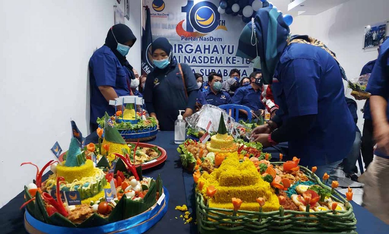 Surabaya - DPD NasDem Surabaya menggelar perayaan Hari Ulang Tahun (HUT) ke-10 bersama para pengurus di tingkat cabang hingga ranting, Kamis (11/11/2021).