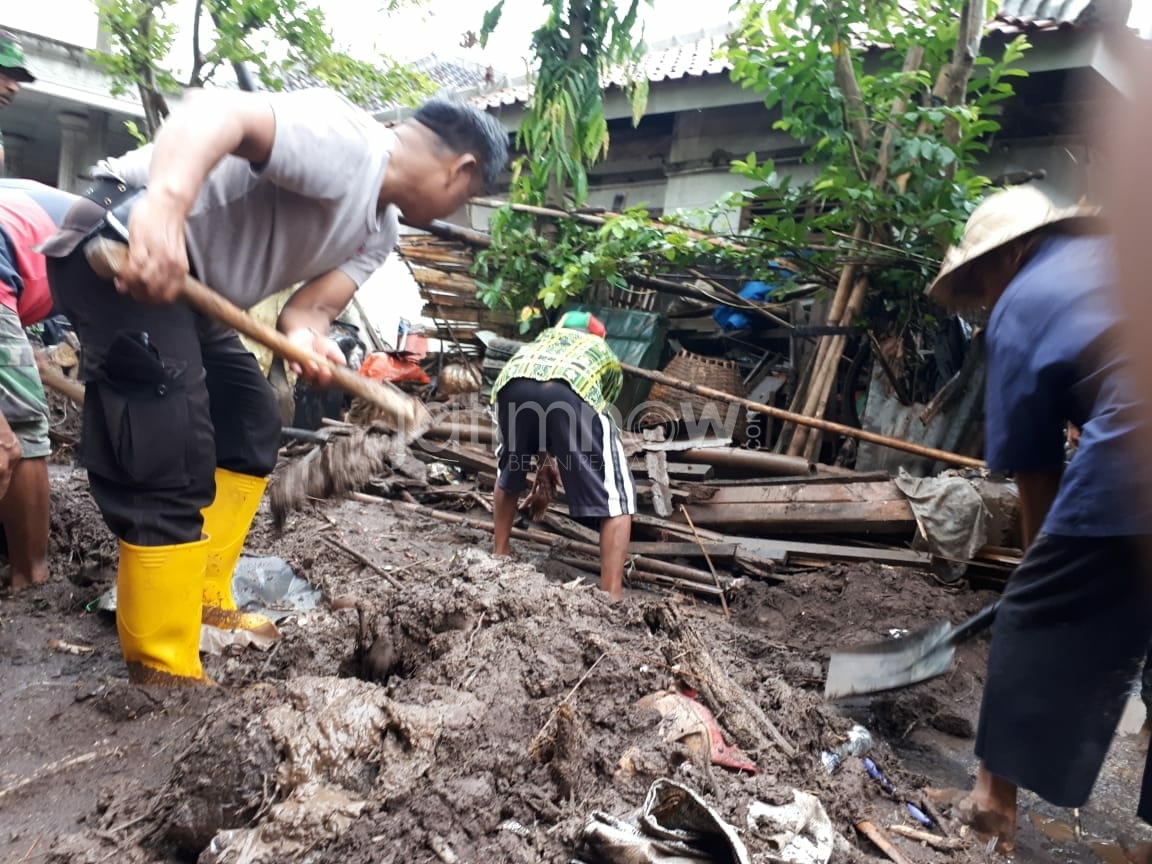jatimnow.com - Ratusan personil Polisi dan Tentara (TNI AD dan AL), melibatkan diri dalam proses normalisasi wilayah Desa Alas Malang Kecamatan Singojuruh, Banyuwangi, yang terdampak banjir bandang.