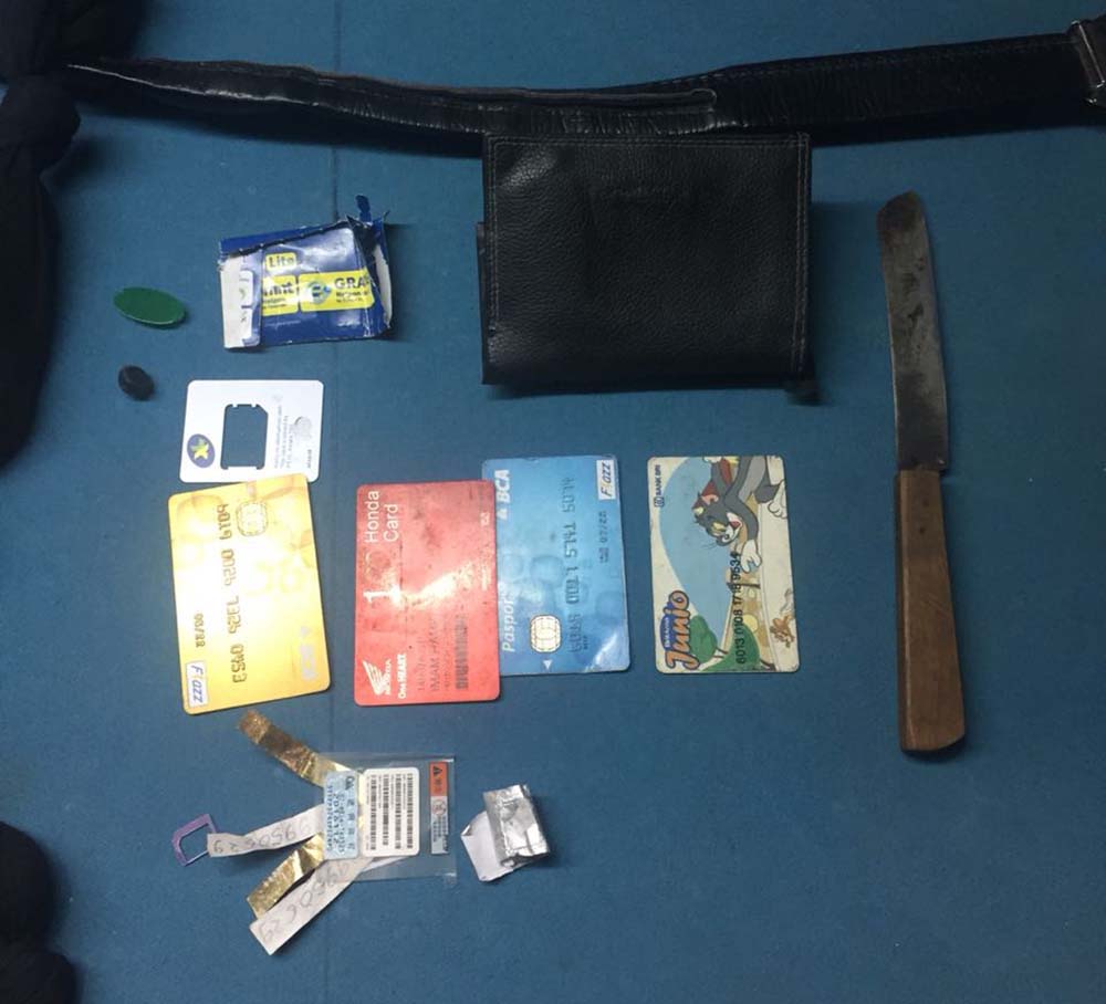 Dari hasil penangkapan tersebut polisi berhasil mengamankan 1 unit motor Honda Mega Pro, sebilah pisau kecil 1 unit motor Honda Kharisma dan dompet hitam berisi surat-surat.