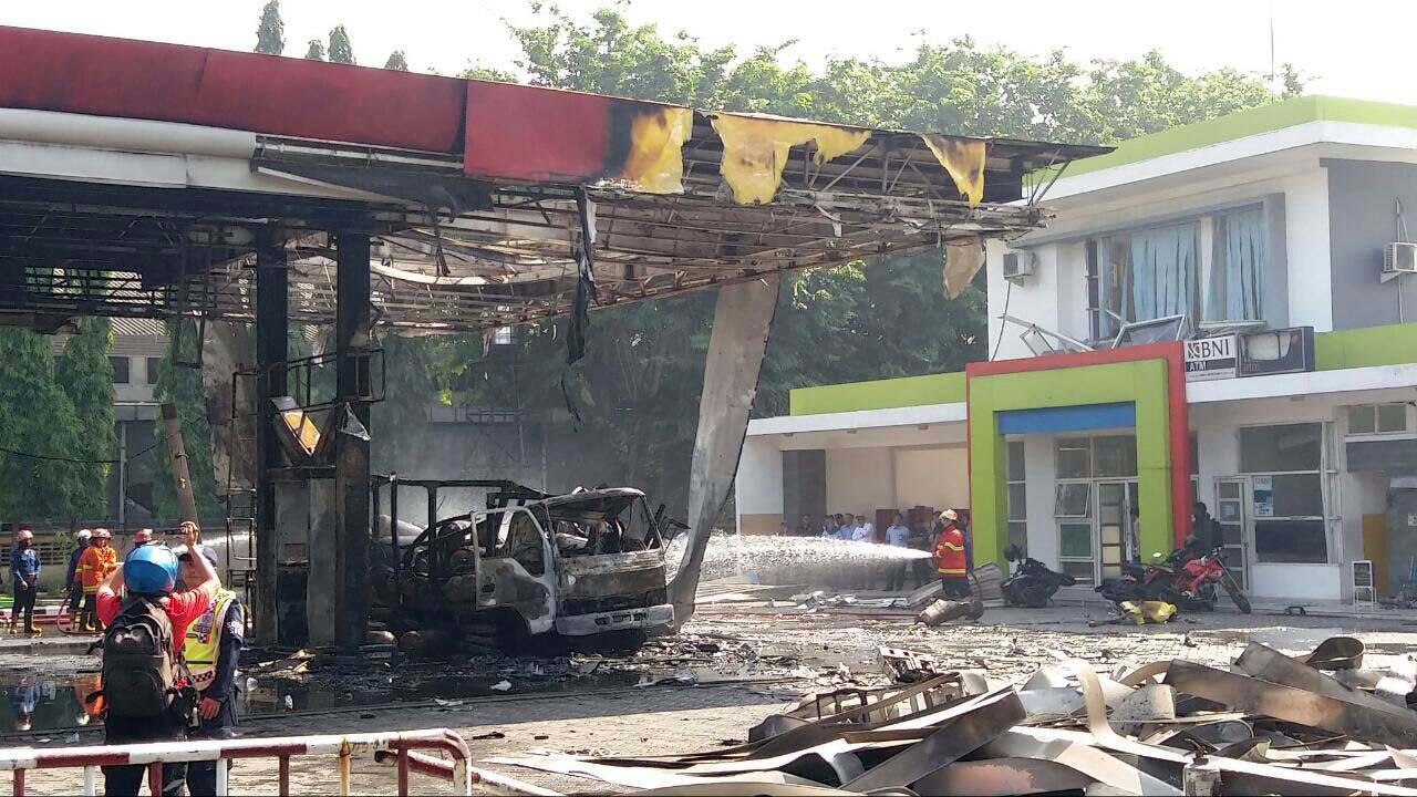 jatimnow.com- Sebuah SPBU di komplek SIER, Berbek, Sidoarjo terbakar hebat, Kamis (8/3/2018). Sejumlah kendaraan ikut dilalap api.