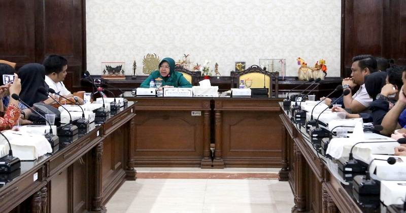 jatimnow.com - Wali Kota Surabaya Tri Rismaharini bertemu Influencer se Surabaya di ruang sidang Wali Kota Surabaya, Rabu 25/7/2018).