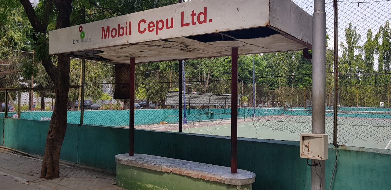 jatimnow.com - Lapangan basket di depan Pendopo Kabupaten Bojonegoro kondisinya memprihatinkan, Selasa (7/8/2018).