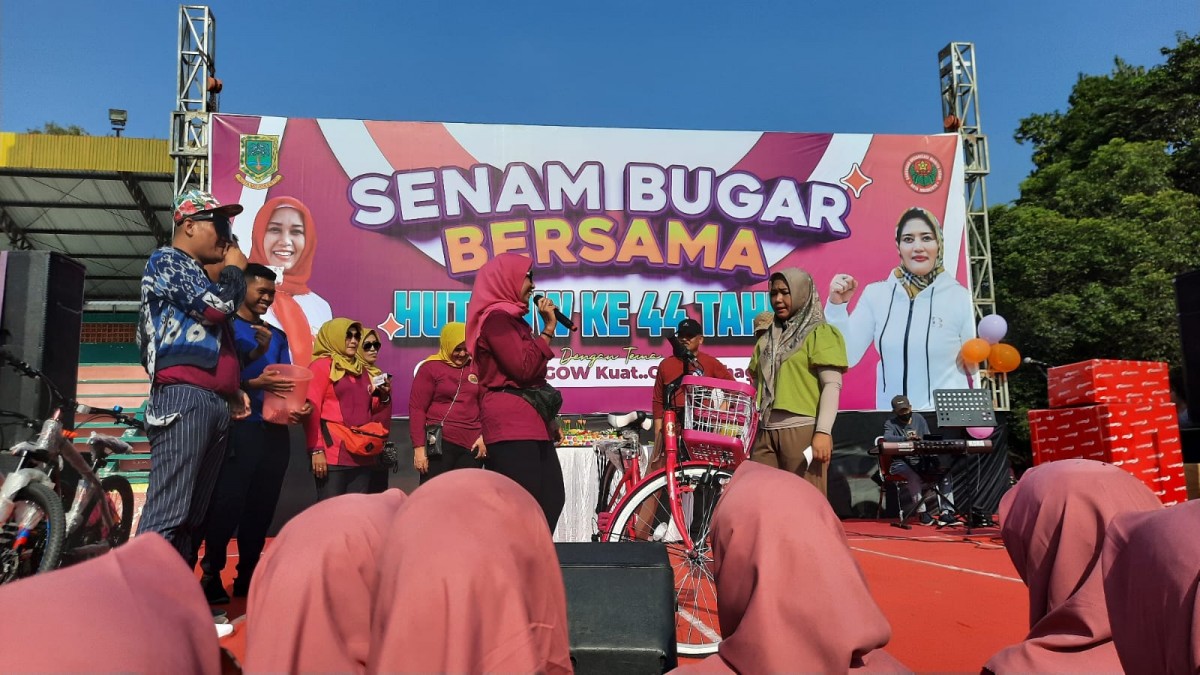 Kegiatan senam sehat bersama dalam rangka memperingati HUT ke-44 GOW Kota Mojokerto ini diakhiri dengan pengundian puluhan doorprize dengan hadiah utama 1 kulkas 2 pintu. (ADV)