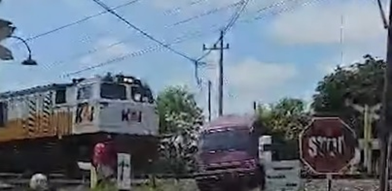 "Pengendara nekat melintasi perlintasan itu. Bisa masuk, tapi tidak bisa keluar. Setelah di atas rel, mobil itu mau mundur tidak sempat, maju juga tidak sempat,” ujar Kasatlantas Polres Madiun AKP Cahya Fajar Timur Amboina.