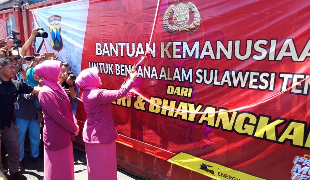 "Barang-barang 17 kontainer ukuran 20 feet dari Bapak Kapolri. Saya selaku Kapolda Jatim menyerahkan kepada PT PELNI untuk mengangkut kontainer ini sebagai bantuan kemanusiaan korban gempa di Sulteng berisi beras, mi instan, snack, biskuit, sarden air mineral susu pembalut wanita, dan sembako yang dibutuhkan," ujarnya.