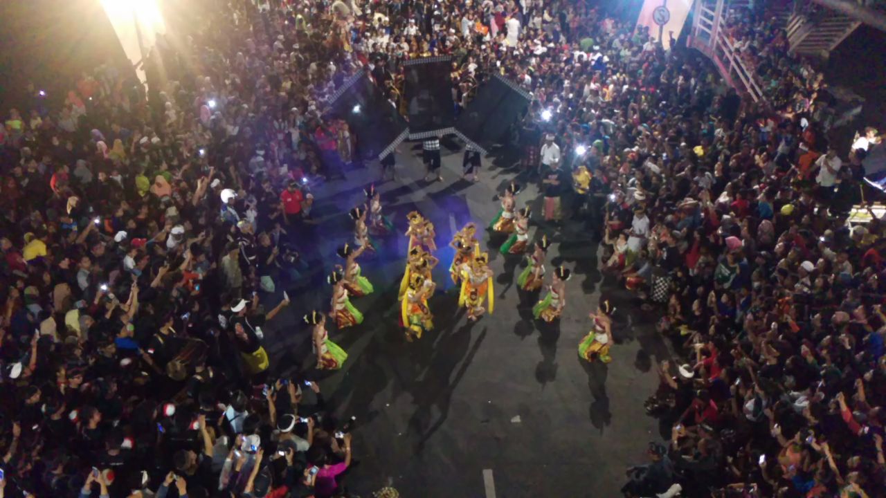 Dalam pawai tersebut juga diiringi dengan pertunjukan tari kolosal yang tak kalah menarik dari arak-arakan Ogoh-Ogoh yang melintasi Jembatan Suroboyo.