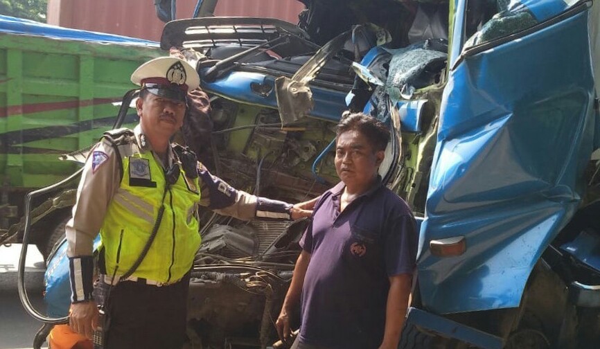 Truk ini ditabrak truk yang dikemudikan Supono yang tidak bisa mengendalikan kemudinya setelah truknya tiba-tiba oleng ke kiri.