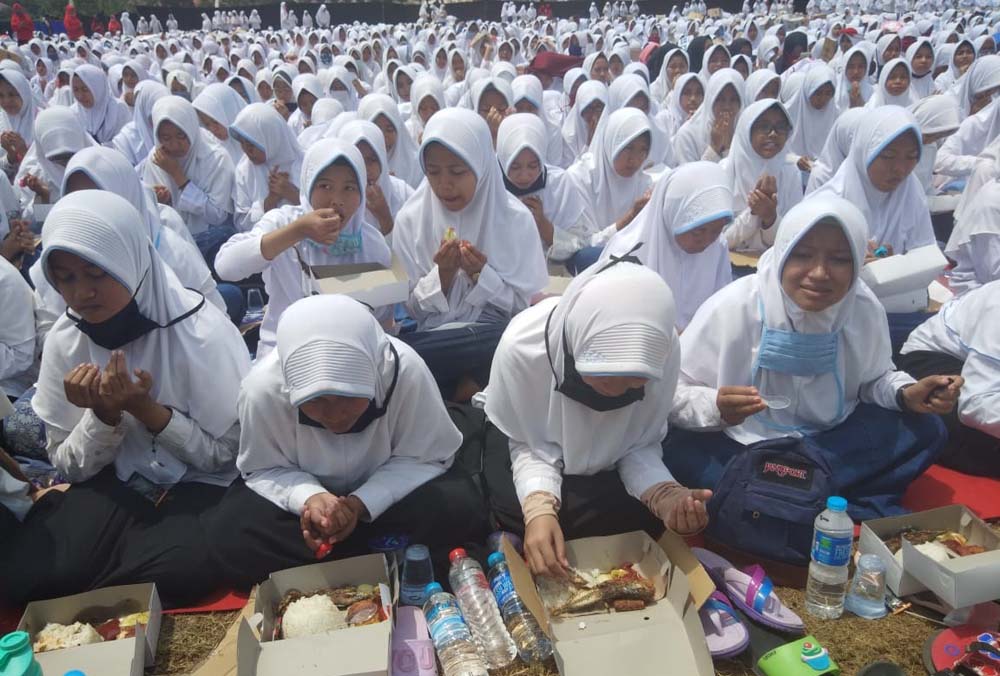 Acara ini berlangsung heboh, lantaran ribuan santri ini diberi 4,5 ton ikan, sumbangan dari Kementerian Kelautan dan Perikanan (KKP).
