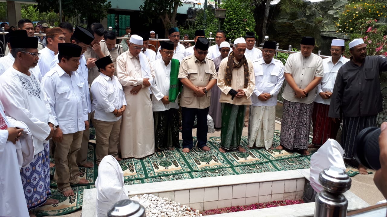 jatimnow.com - Calon Presiden Prabowo Subianto bersama pendukungnya ziarah di Makam Sunan Ampel, Surabaya, Jumat (2/11/2018).