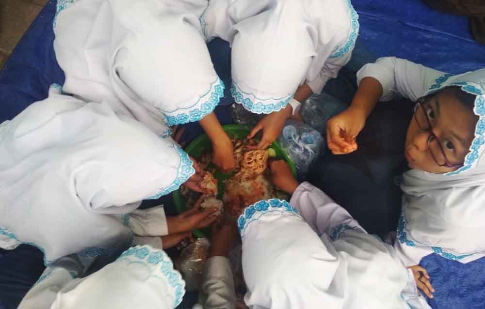 Dalam kegiatan Makan Ikan Bersama Santri di Ponpes Darussalam Blokagung, atas kerjasama Kementerian Kelautan dan Perikanan (KKP), Gemarikan (Gerakan Memasyarakatkan Makan Ikan), Ponpes Darussalam, kumparan.com, jatimnow.com dan BNI.